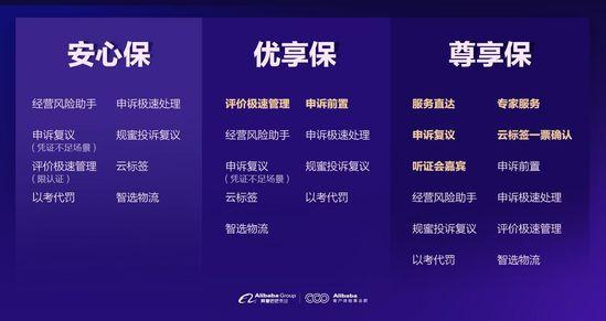 在超级保障计划中,平台将根据店铺合规经营情况,结合经营能力、服务能力等,推出商家综合信用分值——淘信用。根据淘信用的等级,分别提供了安心保、优享保、尊享保三种差异化的权益包,信用越高,得到的权益保障就会越多。
